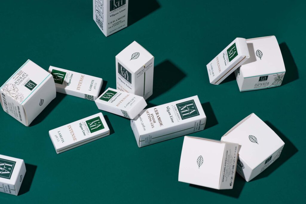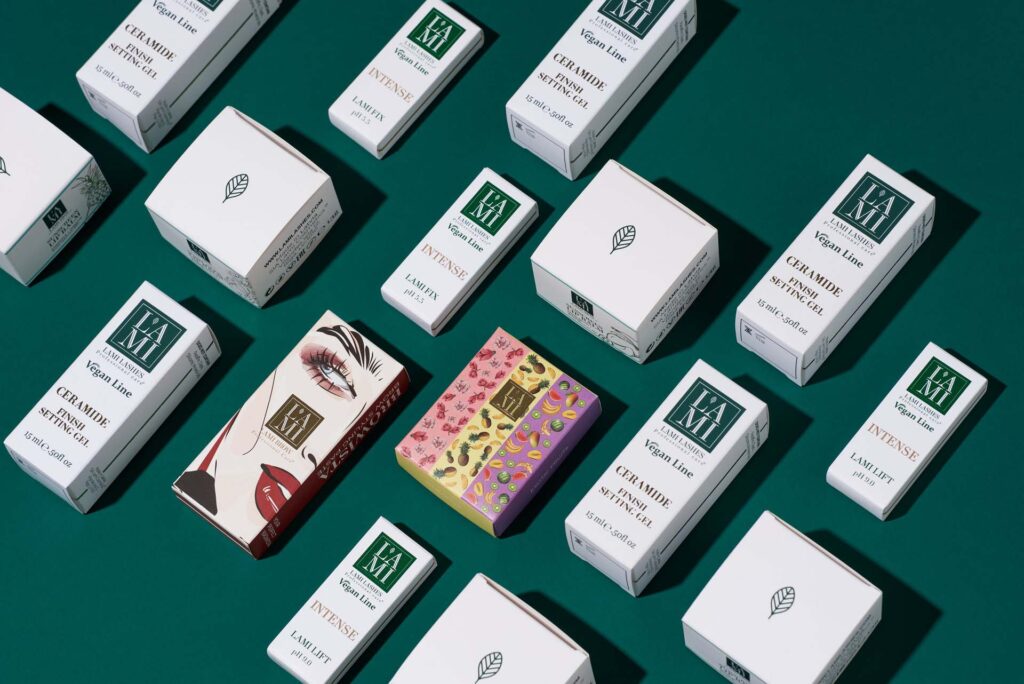 Zīmols “Lami Lashes” uzsver uzacu un skropstu nozīmi koptas sievietes ārējā tēlā. Savukārt mēs noteikti uzsveram produkta iepakojumu un tā nozīmi kopējā zīmola tēlā. Saskaņots un vienots stils veido orķestri, kuru pircējam viegli atpazīt starp daudziem citiem produktiem.