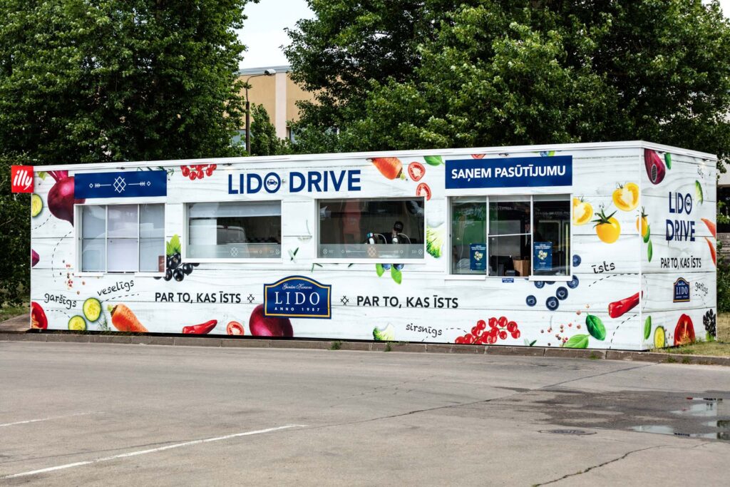 Vides reklāma Lido Drive kioska aplīmēšana. Pasūtītājs – Lido Tirdzniecības furgona aplīmēšana. Pasūtītājs – Circle K Latvija Ieejas durvju uzlīmes ar montāžu. Pasūtītājs – Spice
